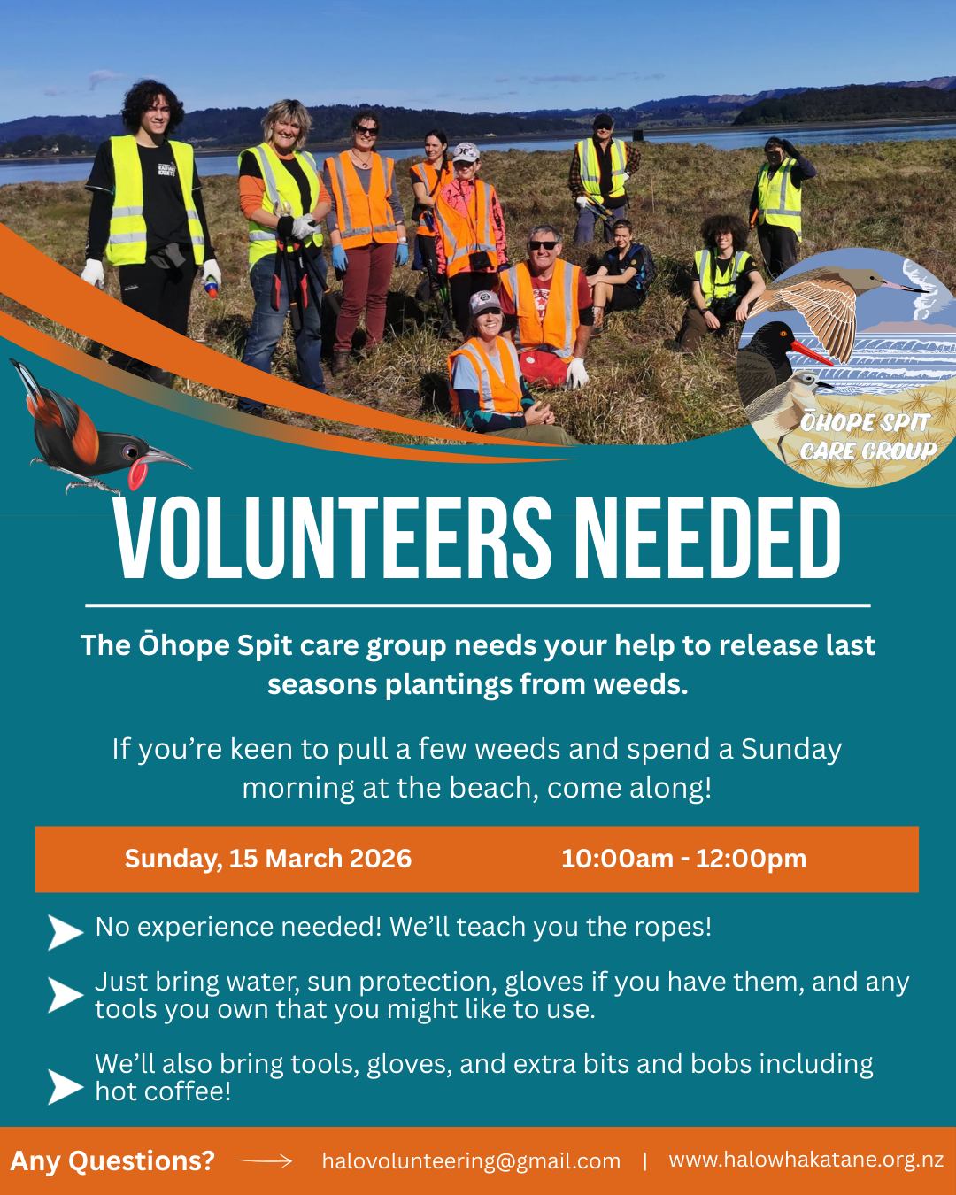 We’re hoping to re-establish monthly working bees to support the mahi and build on the success of the Ōhope Spit Care Group, who have spent the last eight years restoring this ecosystem through their weekly efforts.